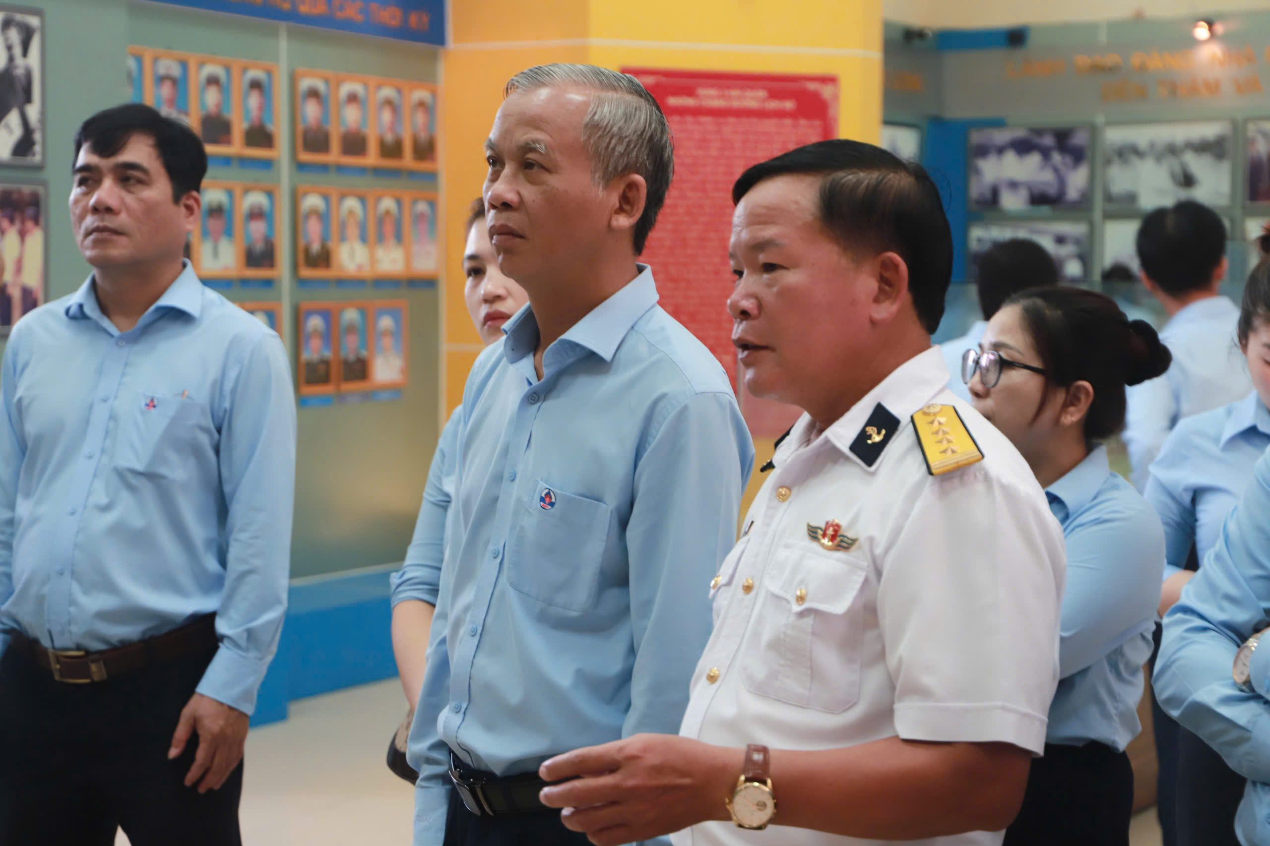 Ảnh: Đảng viên, người lao động thuộc Đảng bộ Quỹ tham quan nhà truyền thống Vùng 3 Hải Quân