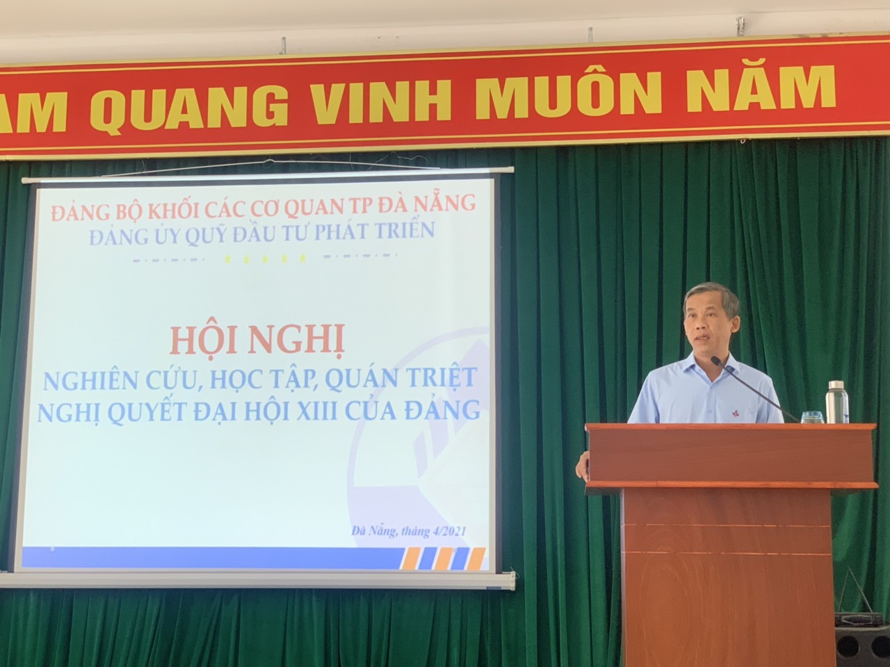 Trong hai ngày 28 và 29-4-2021, Đảng ủy Quỹ Đầu tư phát triển thành phố Đà Nẵng đã tổ chức Hội nghị nghiên cứu, học tập, quán triệt, tuyên truyền và triển khai thực hiện Nghị quyết Đại hội XIII của Đảng với sự tham dự của toàn thể đảng viên của Đảng bộ và người lao động tại Quỹ.
