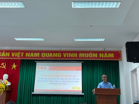 Chiều ngày 21/10/2021, Đảng bộ Quỹ Đầu tư phát triển thành phố Đà Nẵng tổ chức Hội nghị sinh hoạt chuyên đề học tập, quán triệt Kết luận số 01-KL/TW của Bộ Chính trị (khóa XIII) về tiếp tục thực hiện Chỉ thị 05-CT/TW “Về đẩy mạnh học tập và làm theo tư tưởng, đạo đức, phong cách Hồ Chí Minh” và chuyên đề toàn khóa chuyên đề năm 2021 về “Học tập và làm theo tư tưởng, đạo đức, phong cách Hồ Chí Minh về ý chí tự lực, tự cường và khát vọng phát triển đất nước phồn vinh, hạnh phúc”. Thành phần tham dự có các đồng chí trong Ban Chấp hành Đảng bộ, cấp ủy các chi bộ, đảng viên các chi bộ trực thuộc và toàn thể cán bộ, người lao động tại Quỹ với đầy đủ thành phần và thực hiện nghiêm túc 5K về phòng chống dịch Covid 19.