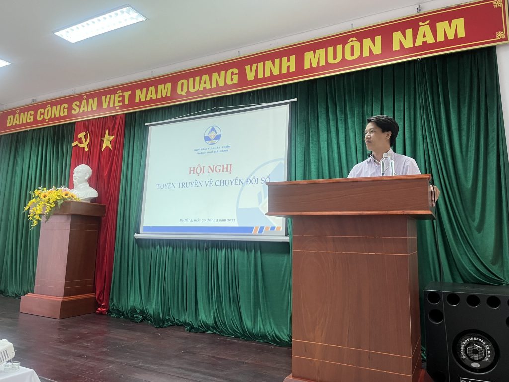 Thực hiện Đề án Chuyển đổi số trên địa bàn thành phố Đà Nẵng đến năm 2025, định hướng đến năm 2030 ban hành tại Quyết định số 2870/QĐ-UBND ngày 28/8/2021 của UBND thành phố Đà Nẵng, đồng thời để nâng cao nhận thức của người quản lý, người lao động về chuyển đổi số và triển khai tốt công tác chuyển đổi số tại cơ quan, ngày 20/5/2022, tại trụ sở Quỹ Đầu tư phát triển thành phố Đà Nẵng, Quỹ đã phối hợp với Sở Thông tin & Truyền thông, Công ty Cổ phần Misa tổ chức Hội nghị tuyên truyền về chuyển đổi số cho toàn thể người quản lý, người lao động. Báo cáo viên là ông Thái Thanh Hải – Trưởng phòng Công nghệ thông tin Sở Thông tin & Truyền thông và ông Trịnh Văn Biển – Giám đốc chuyển đổi số Công ty cổ phần Misa.