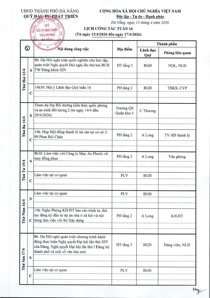Lịch công tác tuần 16