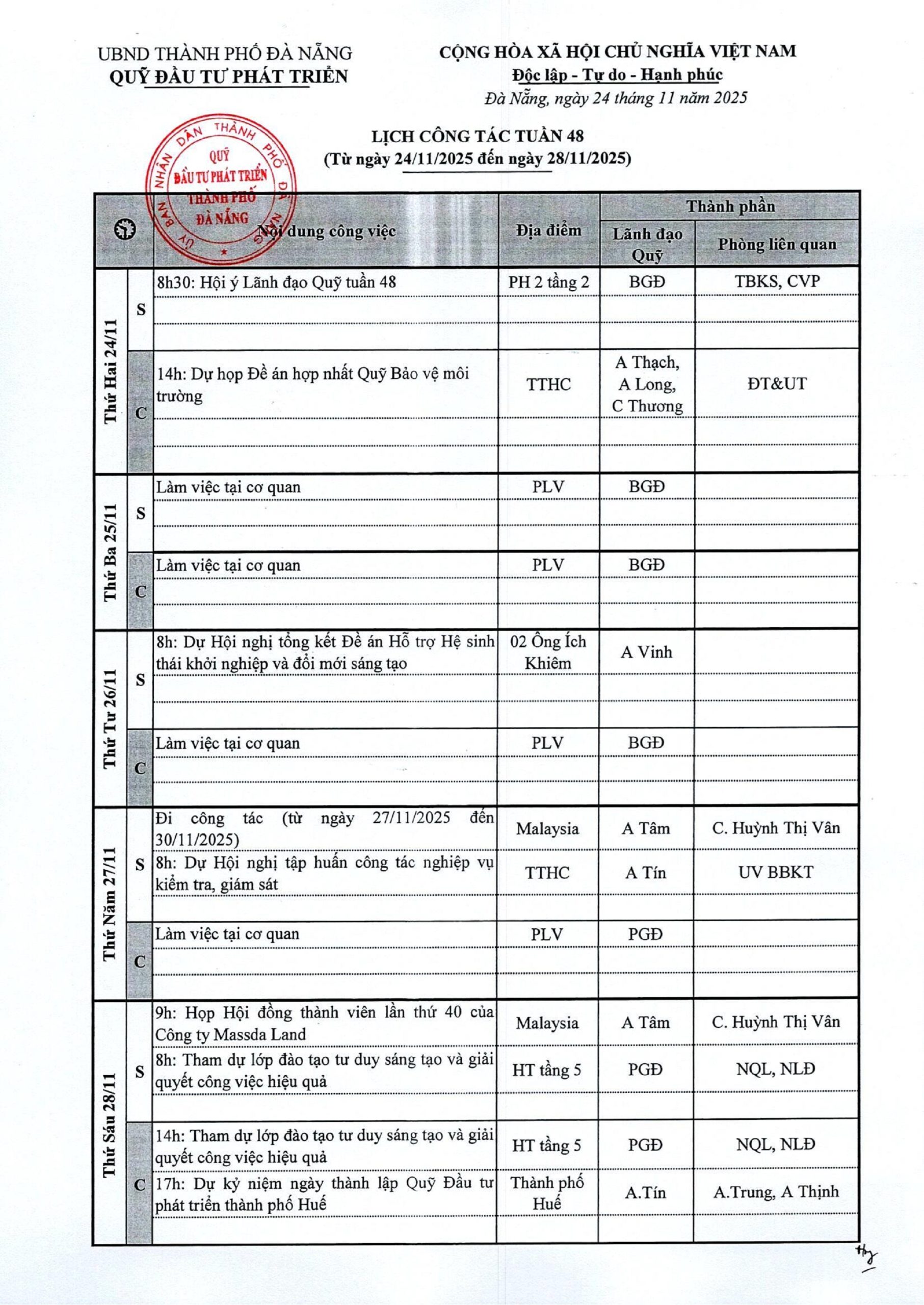 Lịch công tác tuần 48