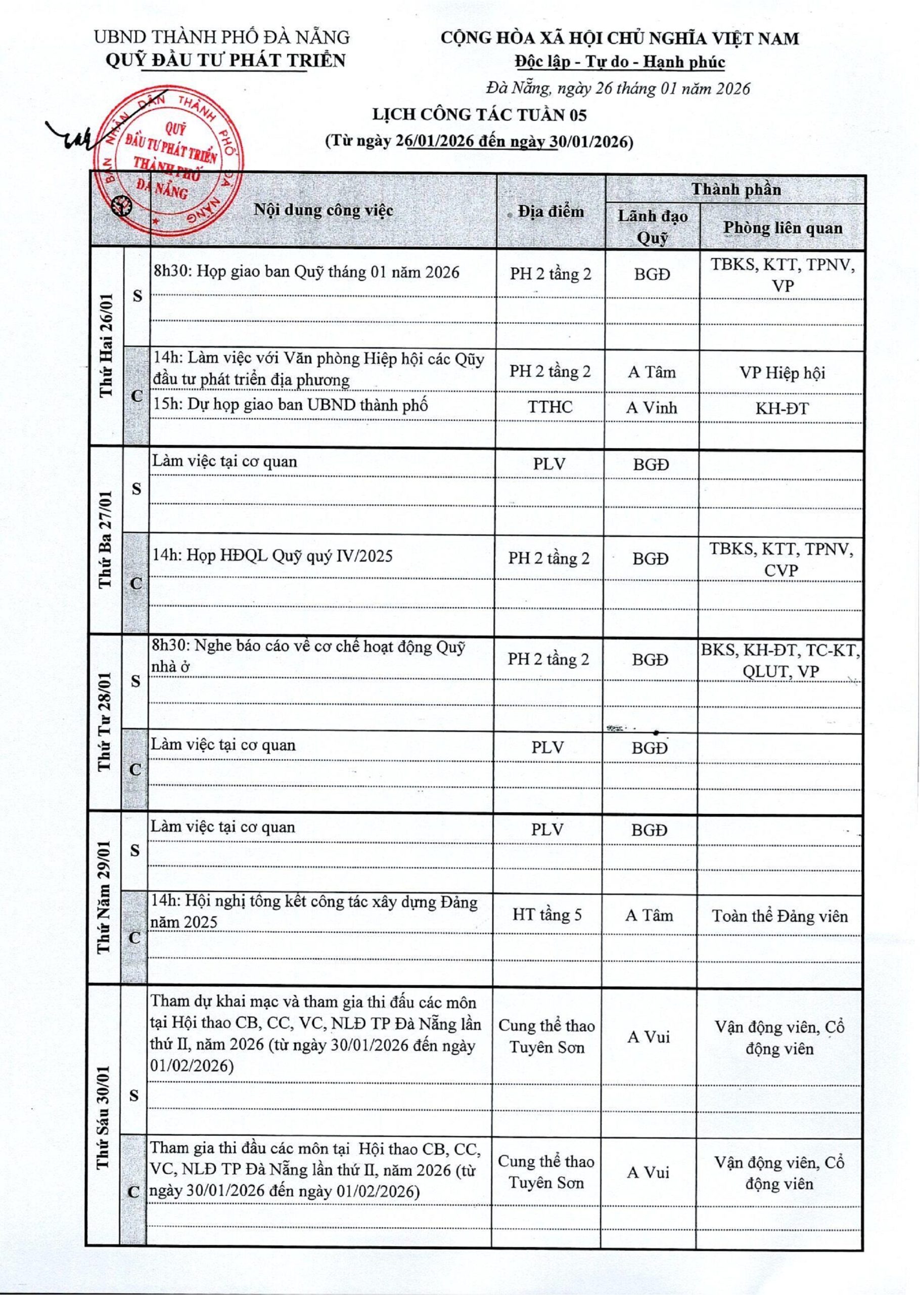 lịch công tác tuần 5